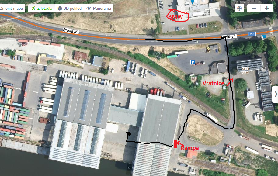 cesta je trošku složitejší, prosím o nastudovaní, u bmw doprava na křižovatce do přístavu k vrátnici